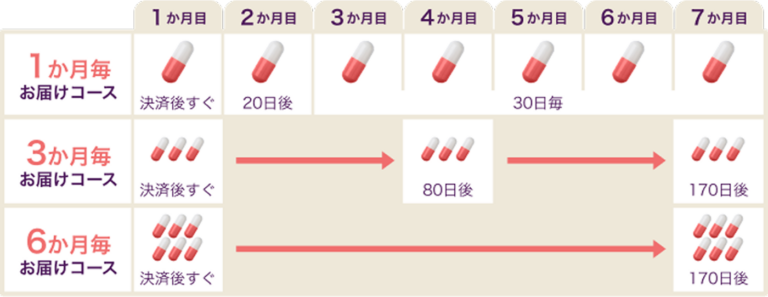 定期プランはお届け頻度を1か月・3か月・6か月から選択でき、3か月と6か月は割引が適用されるため、気になるコストを抑えられます。