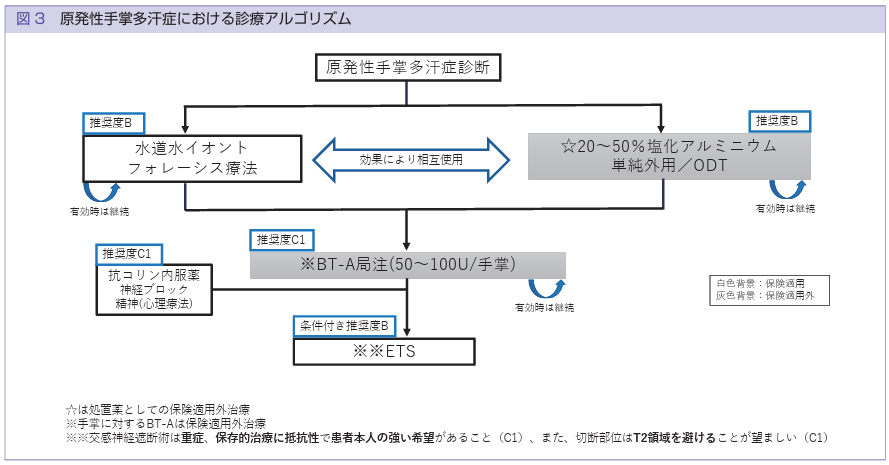 | 第3選択 | 症状をコントロールする治療では十分な改善が見られず、本人の強い希望がある場合に限り「ETS手術(交感神経遮断術)」が検討されることがある |